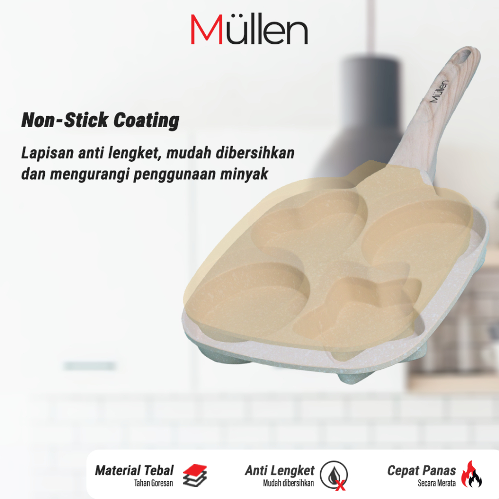 Mullen Penggorengan Sekat 4 in 1 Anti Lengket Omelette Pan Double Bottom Breakfast Pan Kitchenware Double Bottom Panci Tamago Wajan Penggorengan Telur