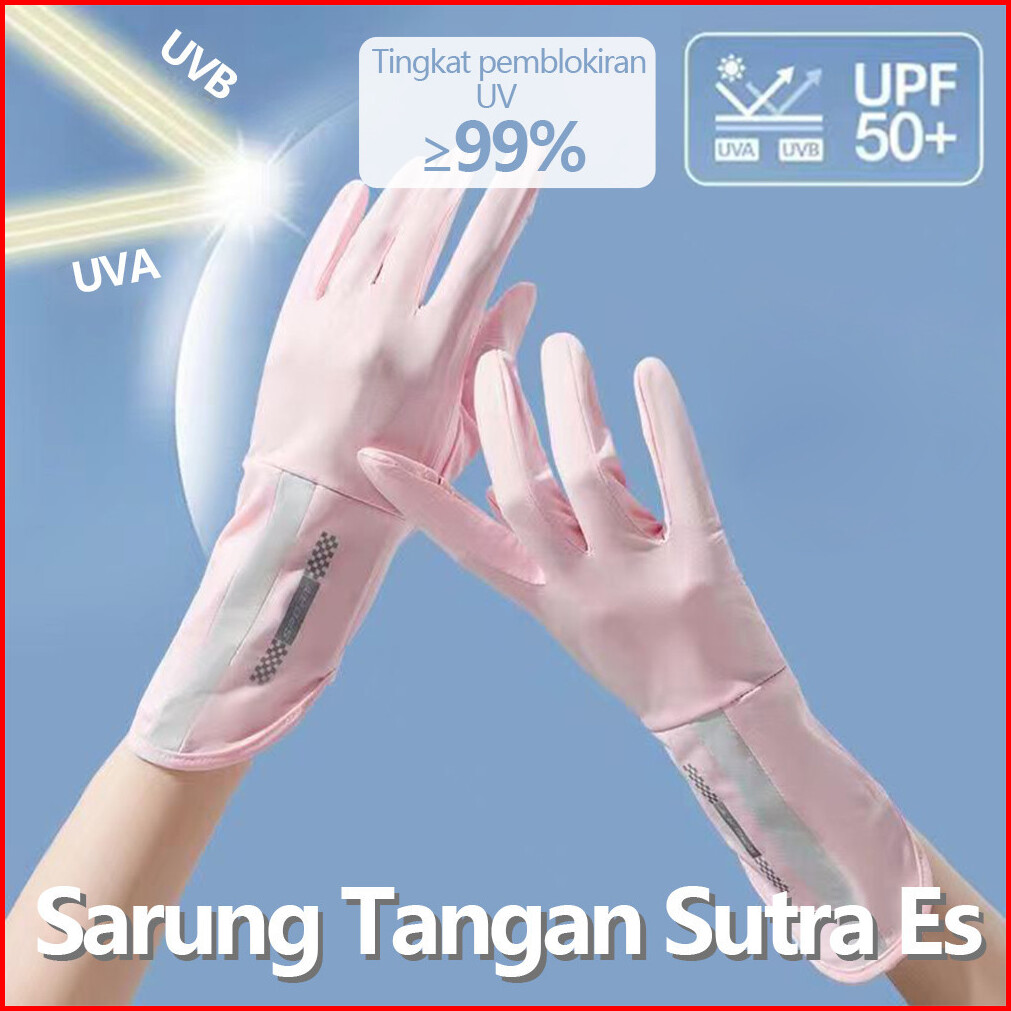 Sarung Tangan Anti Uv Motor Wanita Ice Feeling Fabric Sarung Tangan Matahari Upf50 Outdoor Motor Antislip Gloves Panjang