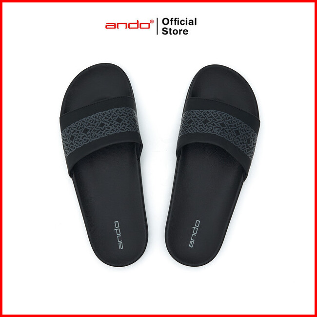 Ando Sandal Selop Slip On Radeva Pria Dewasa - Hitam Abu-abu