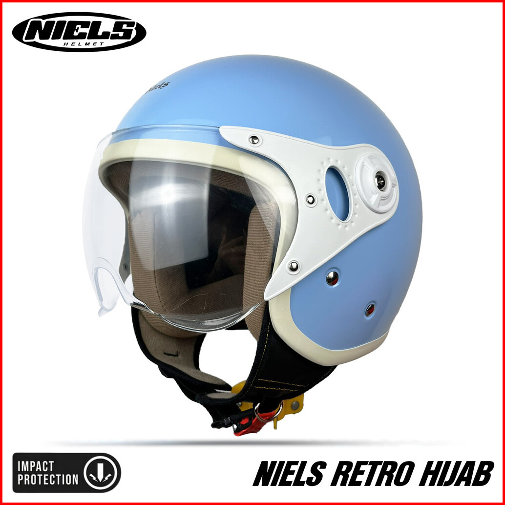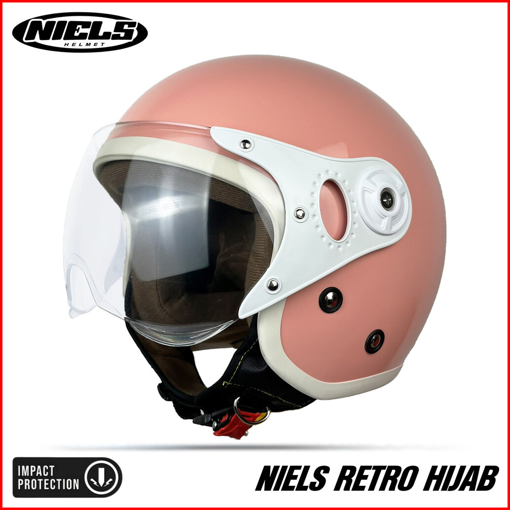 Niels - Helm Bogo Retro Hijab Dewasa Kaca Pilot Sni Motorcycle List Putih