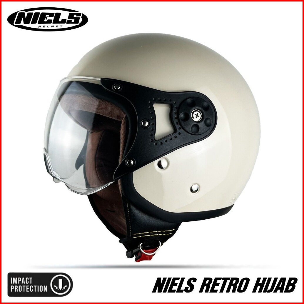 Niels - Helm Bogo Retro Hijab Dewasa Kaca Pilot Sni Motorcycle Cream