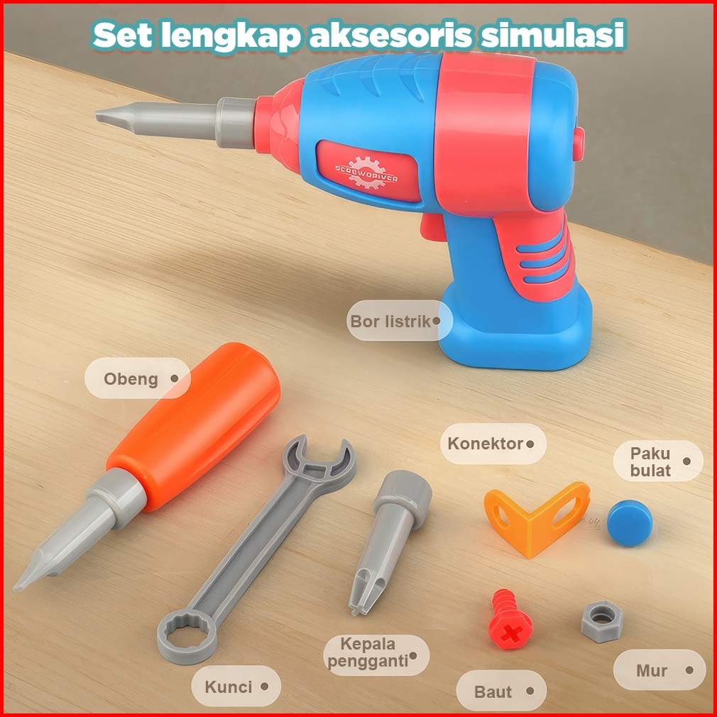 Babycolor 3d Bor Obeng Listrik Diy Set Merakit Mainan Drill Kotak Alat Simulasi Anak-anak Edukasi