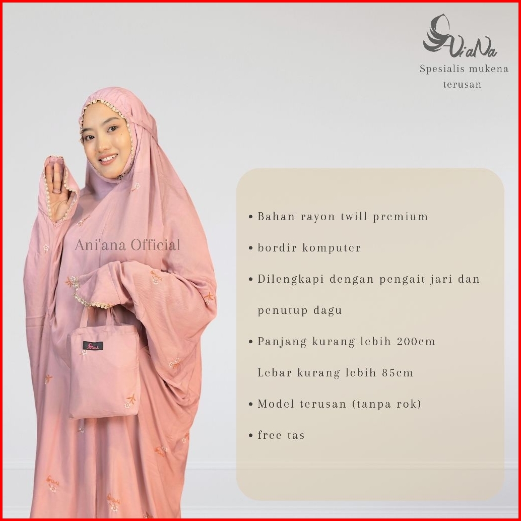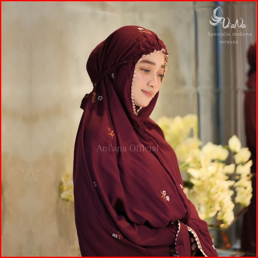 Ani Ana - Mukena Terusan Bordir Bahan Rayon Twil Premium Kbi Motif Bunga Kecil Cantik Bordir Timbul Ani Ana Alisha