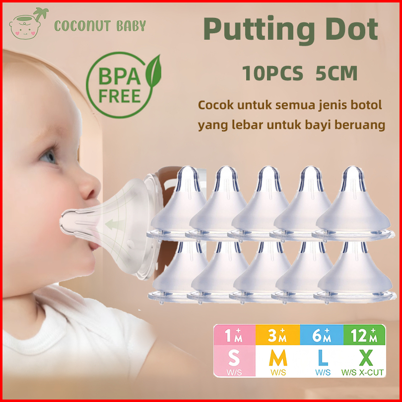 10pcs Dot Bayi Wide Neck 5cm Nipple Silikon Bpa Free Empeng Bayi Peristaltic Plus Lebar Anti Kolik Mnz