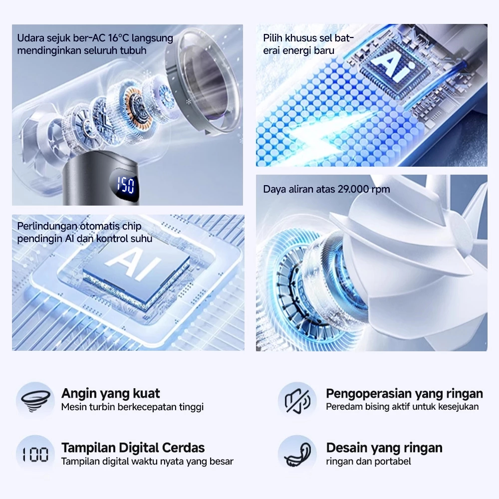 Kipas Angin USB Turbo 150 Gear Mini Handheld Fan Digital High Speed
