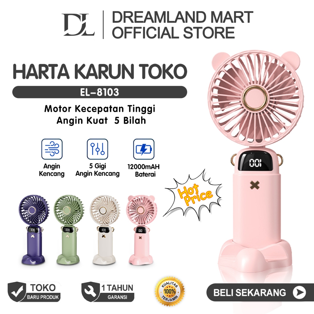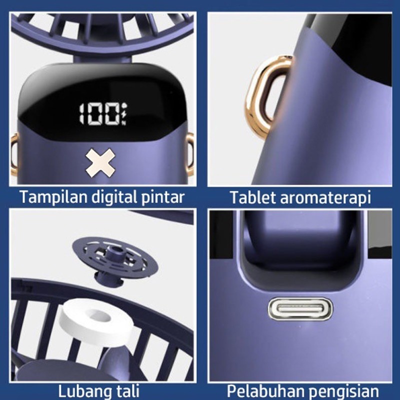 Kipas Angin Mini DL USB 15000mAh Lipat 5 Speed Wind LED Display Aromaterapi Portable