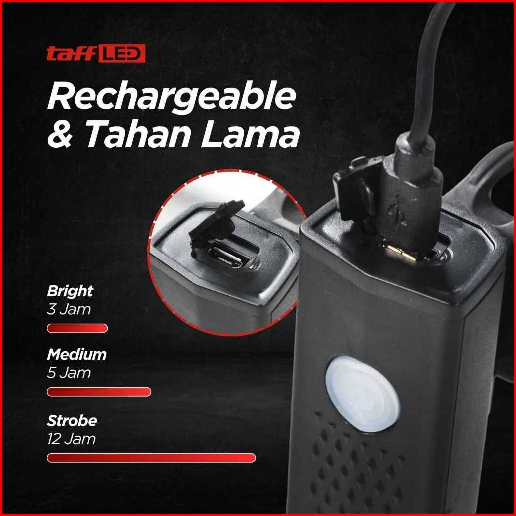 Taffled Lampu Depan Sepeda Led Usb Rechargeable 800mah 300 Lumens - Rpl25