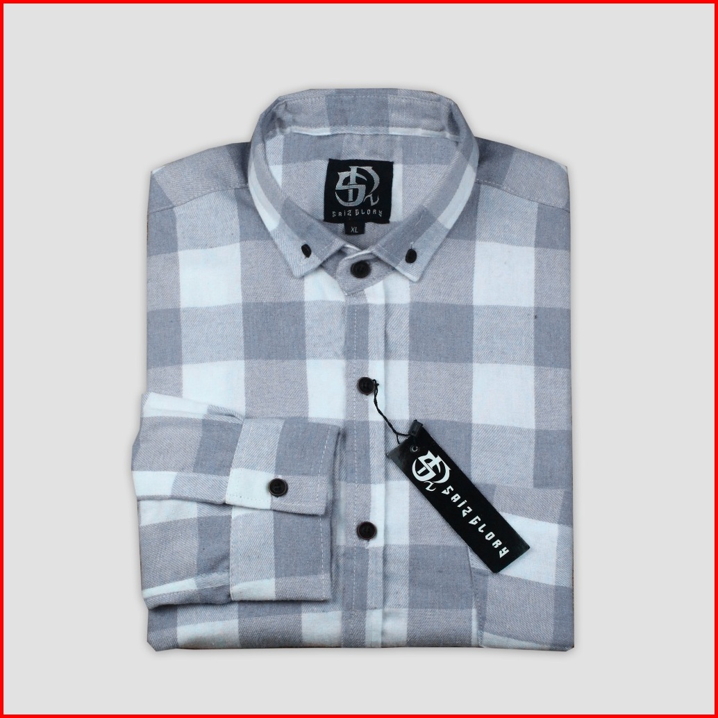 Saiz Glory Kemeja Pria Lengan Panjang Bahan Flanel Motif Kotak Kotak
