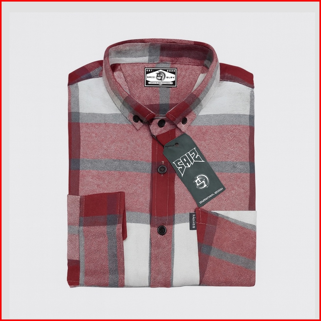 Saiz Glory Kemeja Flanel Pria Lengan Panjang Motif White Blue Dark Mocca