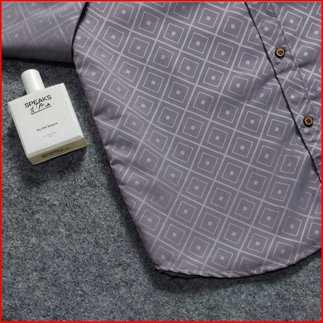 Detak Original Kemeja Embos Sultan Pria Lengan Panjang Grey Diamond Casual Slimfit