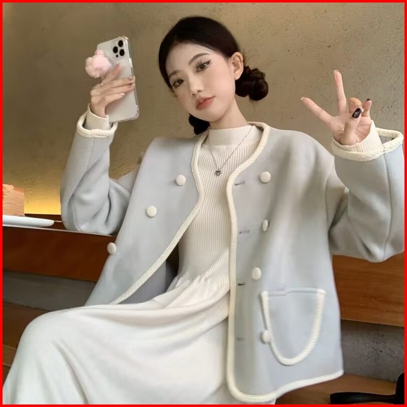 Jaket Pink Gaya Korea Atasan Jaket Lengan Panjang Kasual Modis Wanita
