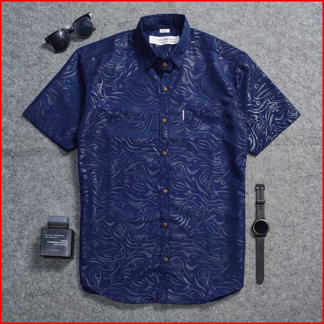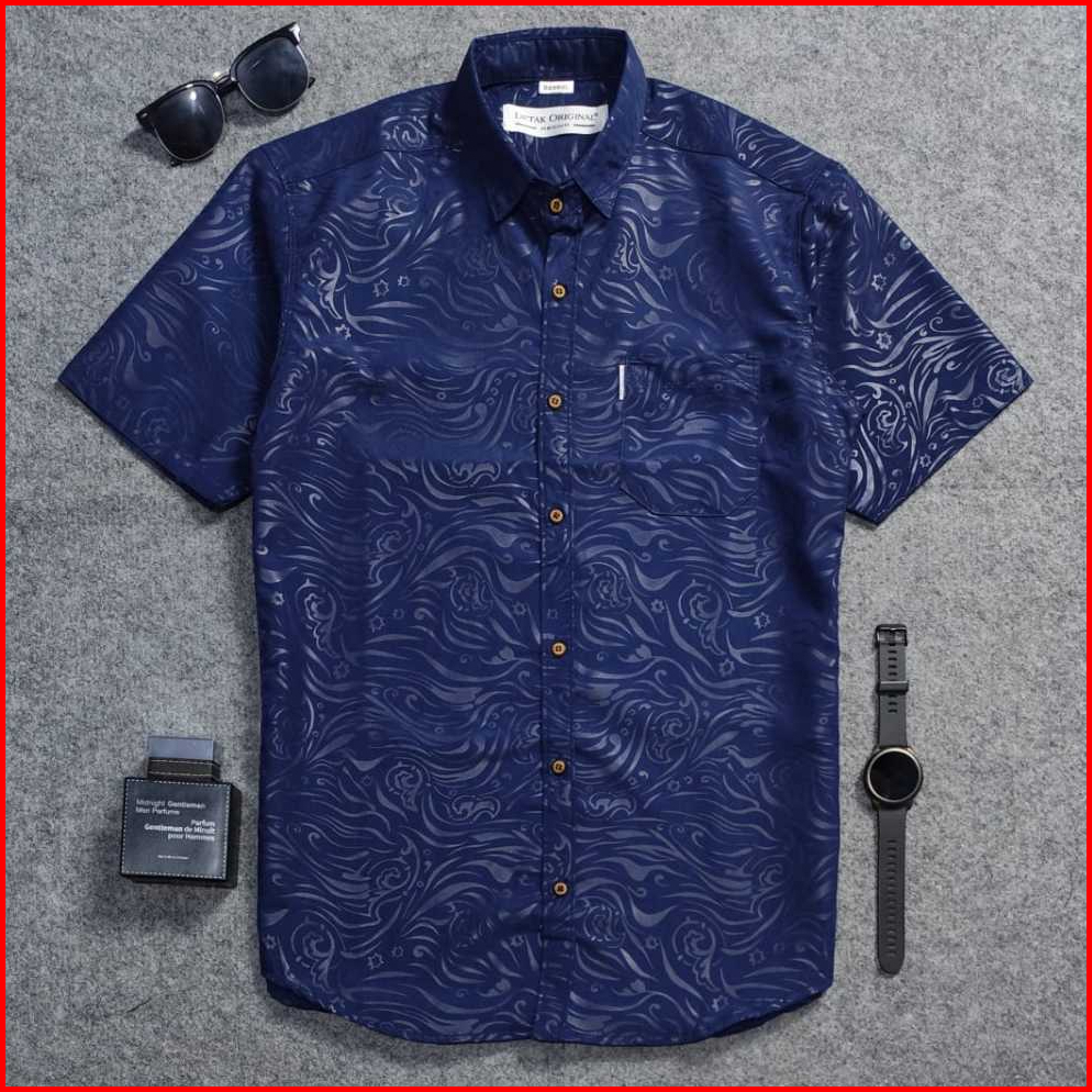 Detak Original Kemeja Embos Sultan Pria Lengan Pendek Navy Yakuza Casual Slimfit