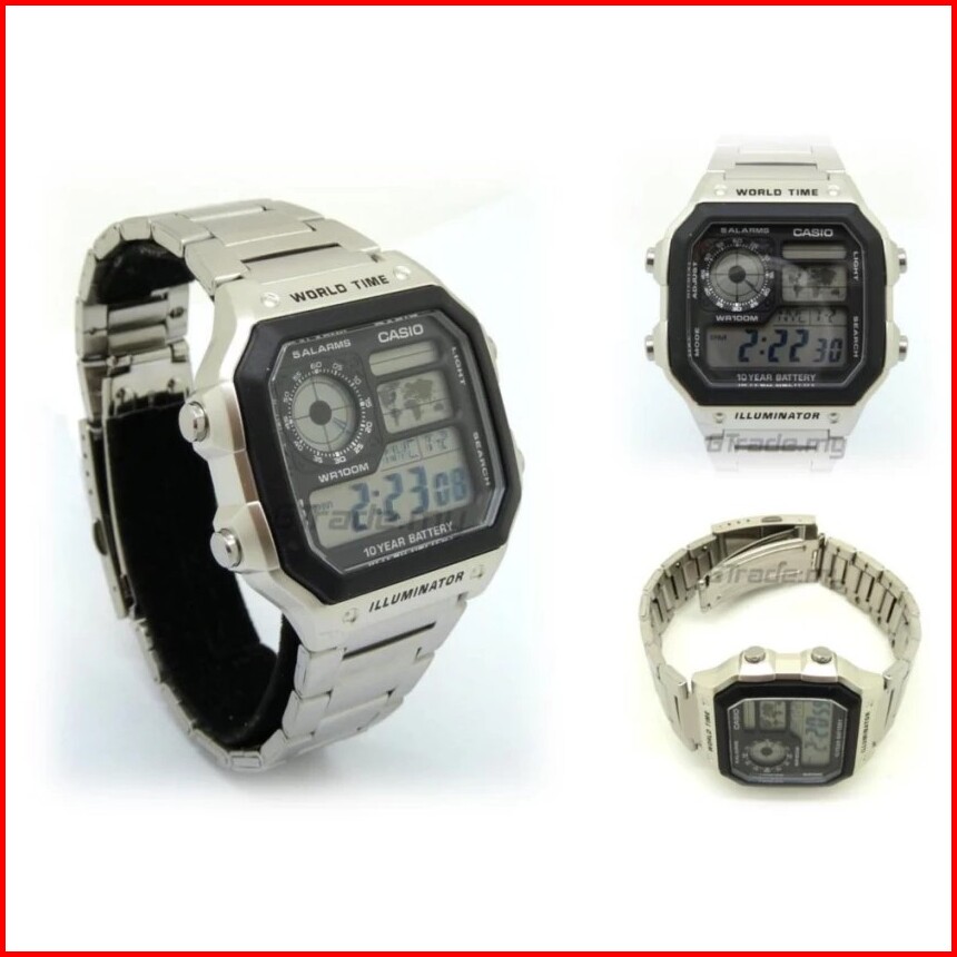 Casio General Ae-1200whd-1a Ae1200whd-1a Jam Tangan Pria Digital Stainless Raintai Silver