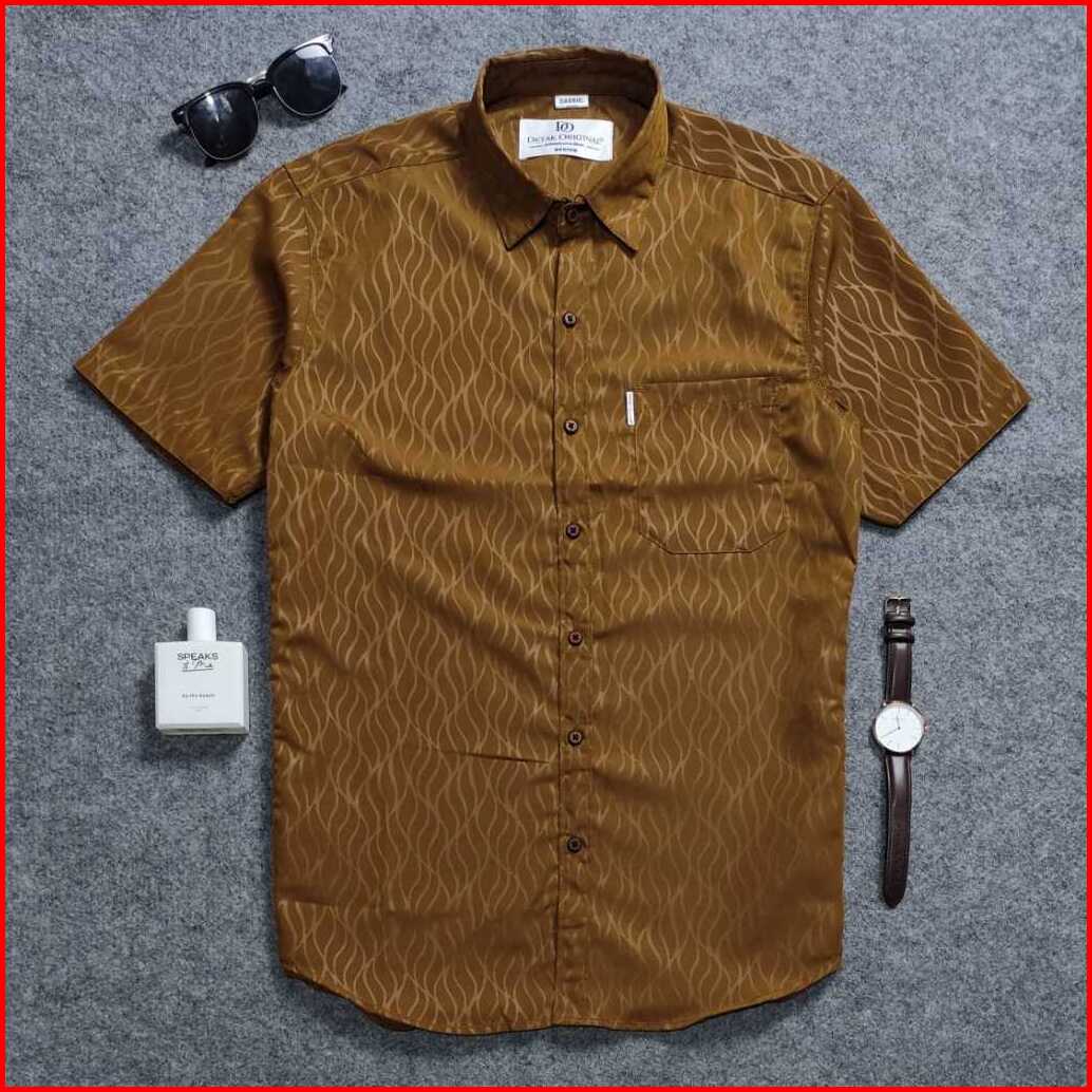 Detak Original Kemeja Embos Sultan Pria Lengan Pendek Caramel Helix Casual Slimfit