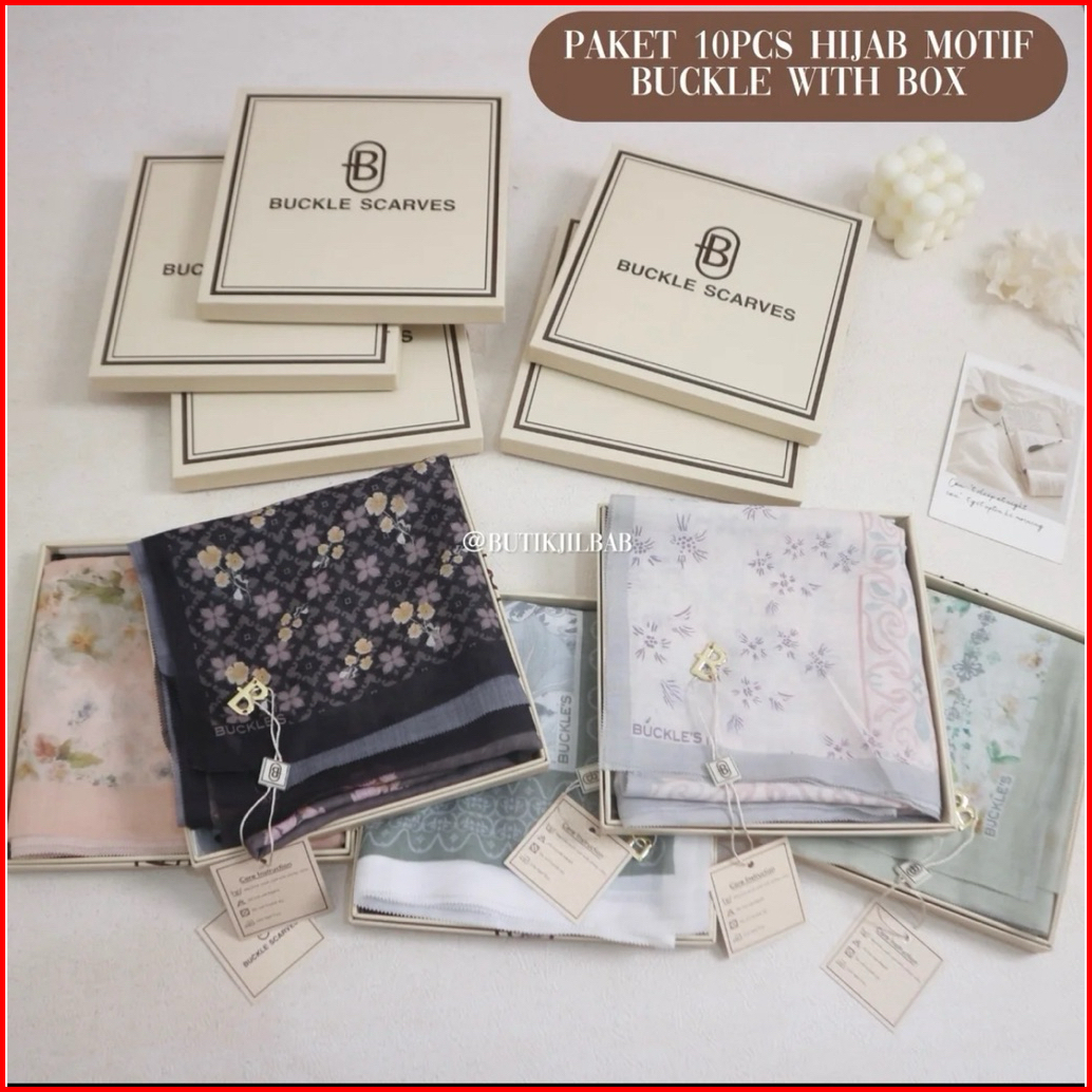 Grosir Isi 10pcs Hijab Bucklescarves With Box Segiempat Hijab Motif Voal Premium Lasercut Kerudung Square Muslim