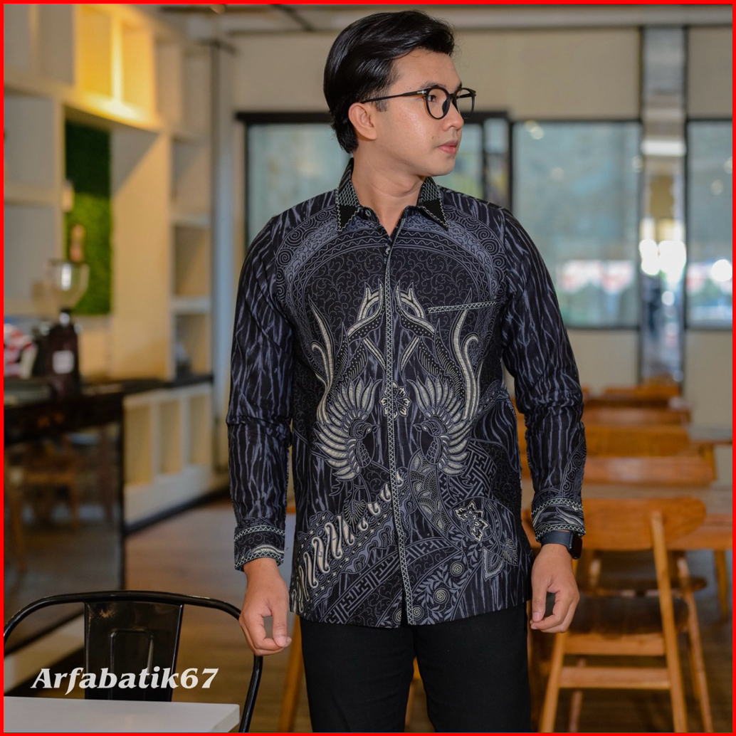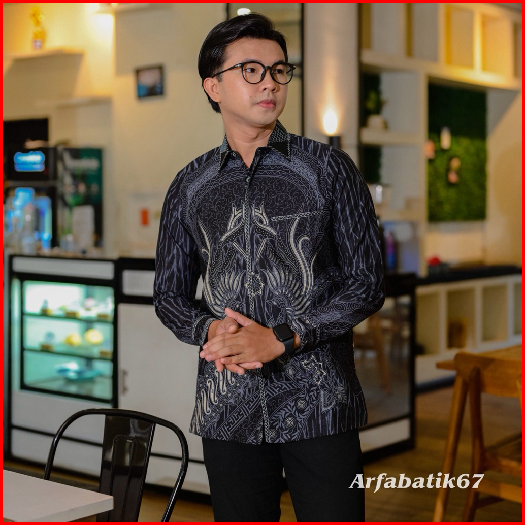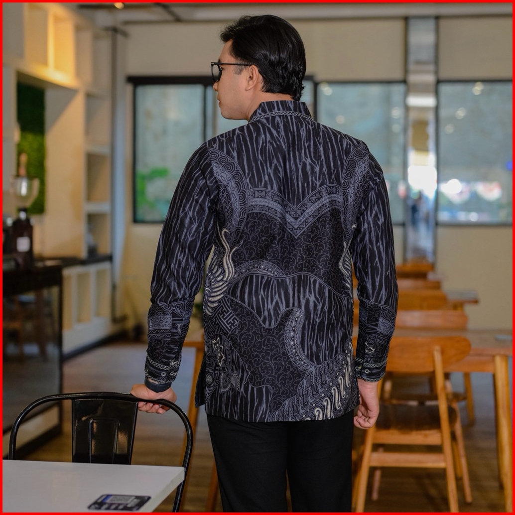 Sabdo Abu Kemeja Batik Smock Bordir Pria Katun Prima Premium Lengan Panjang Lapis Full Furing Trikot Wafle Full Sampai L