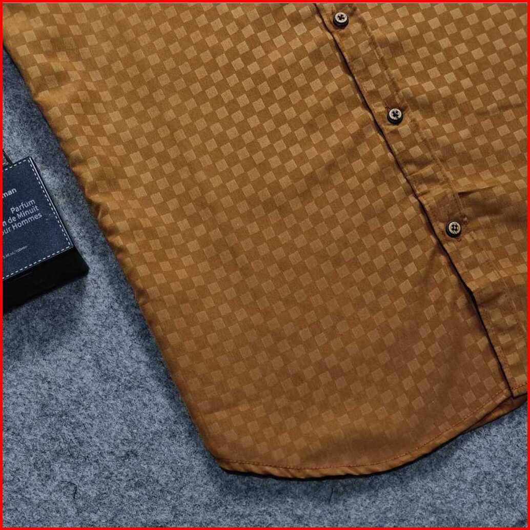 Detak Original Kemeja Embos Sultan Pria Lengan Pendek Caramel Chessboard Casual Slimfit