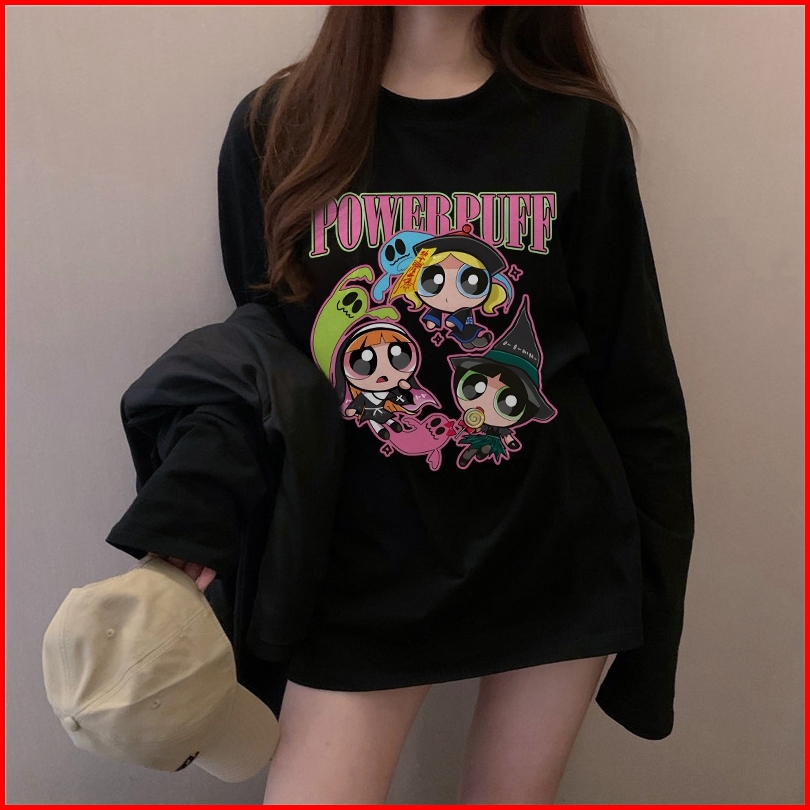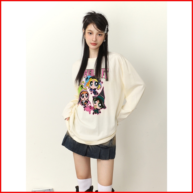 The Monseur Gallery Baju Kaos Wanita Lengan Panjang Kaos Oversize Wanita Baju Atasan Wanita Flying Little Witch Kaos Wan