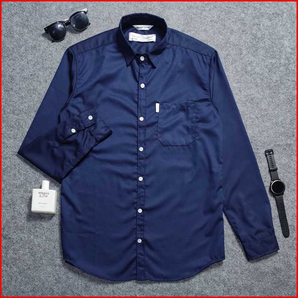 Detak Original Kemeja Polos Twill Premium Pria Lengan Panjang Navy Casual Slimfit