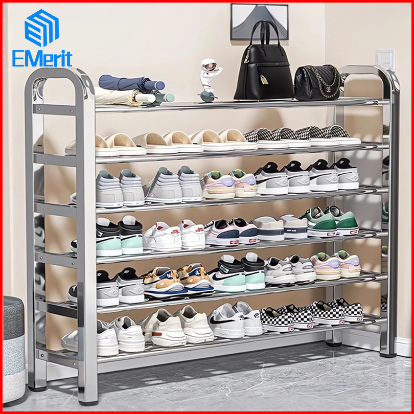 Rak Sepatu Stainless Steel 6 Tingkat Rak Sepatu Kokoh Tempat Sepatu Sendal Besi Mudah Bongkar Pasang