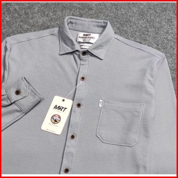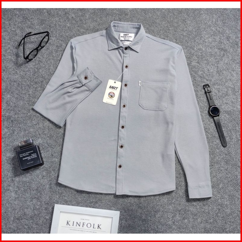 Detak Original Kemeja Polos Pria Lengan Panjang Cotton Lacos Pique Premium Slim-fit Abu Muda
