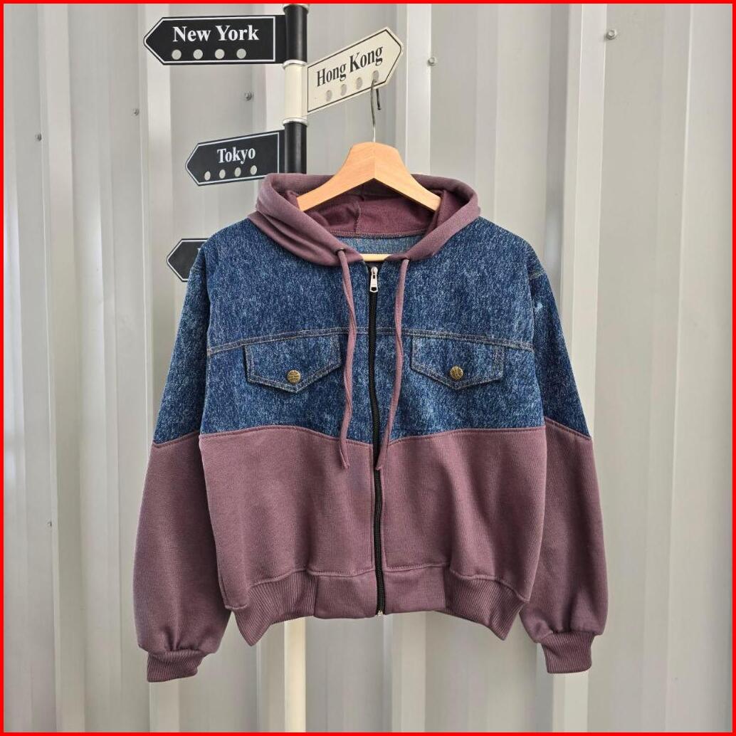 Jaket Wanita Oversize - Vior V Jeans Jacket - Hoodie Ziper