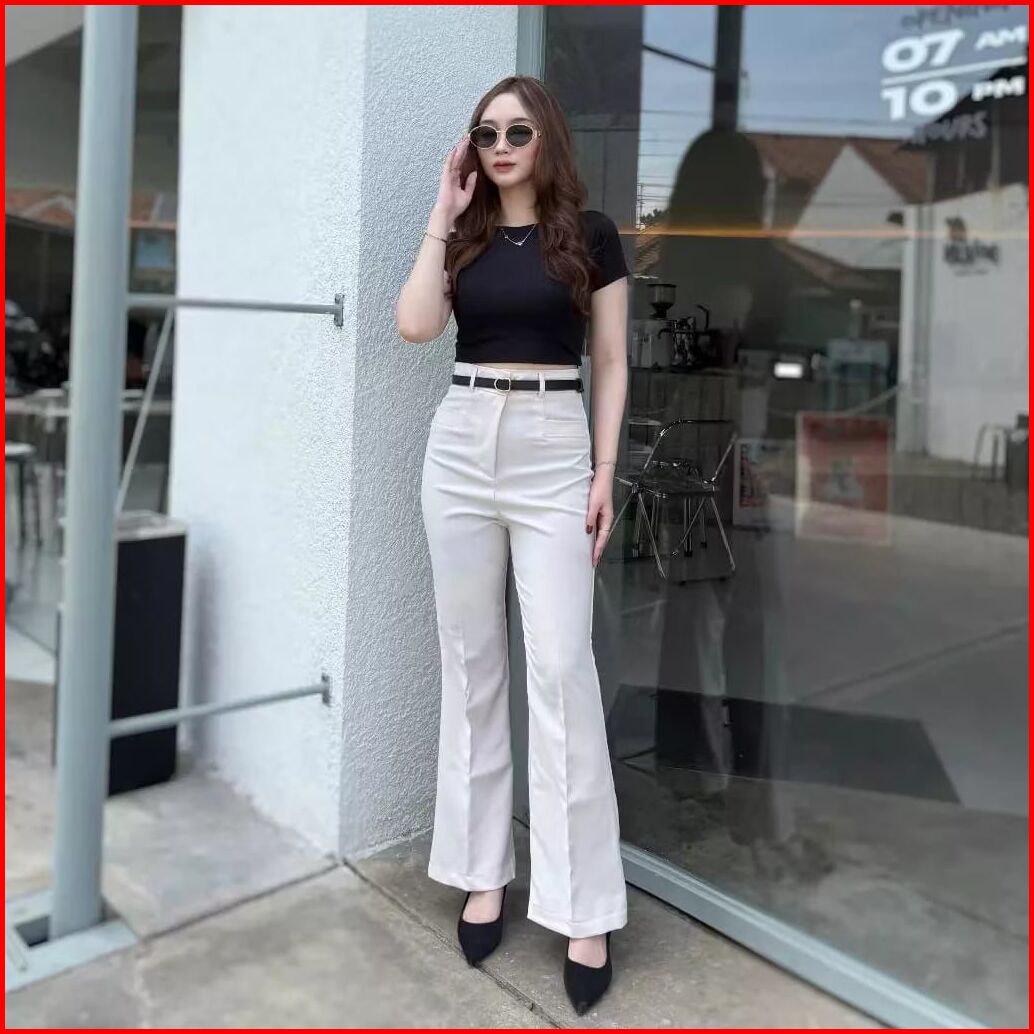 Kylie Cutbray Highwaist Pants Celana Flare Pants Wanita Semi Woll Premium