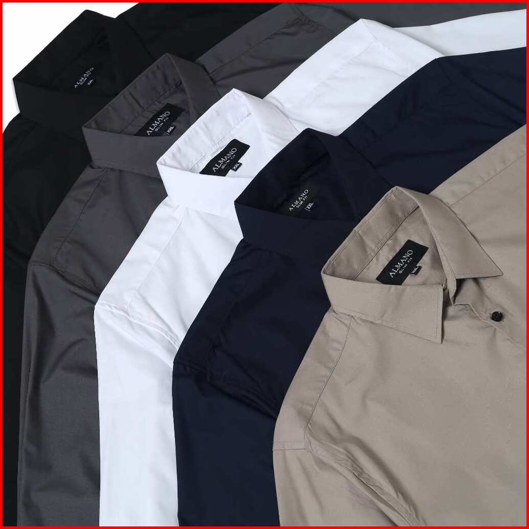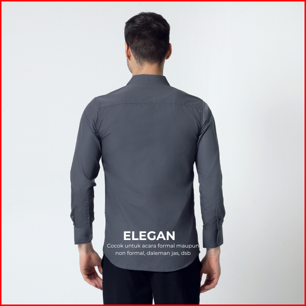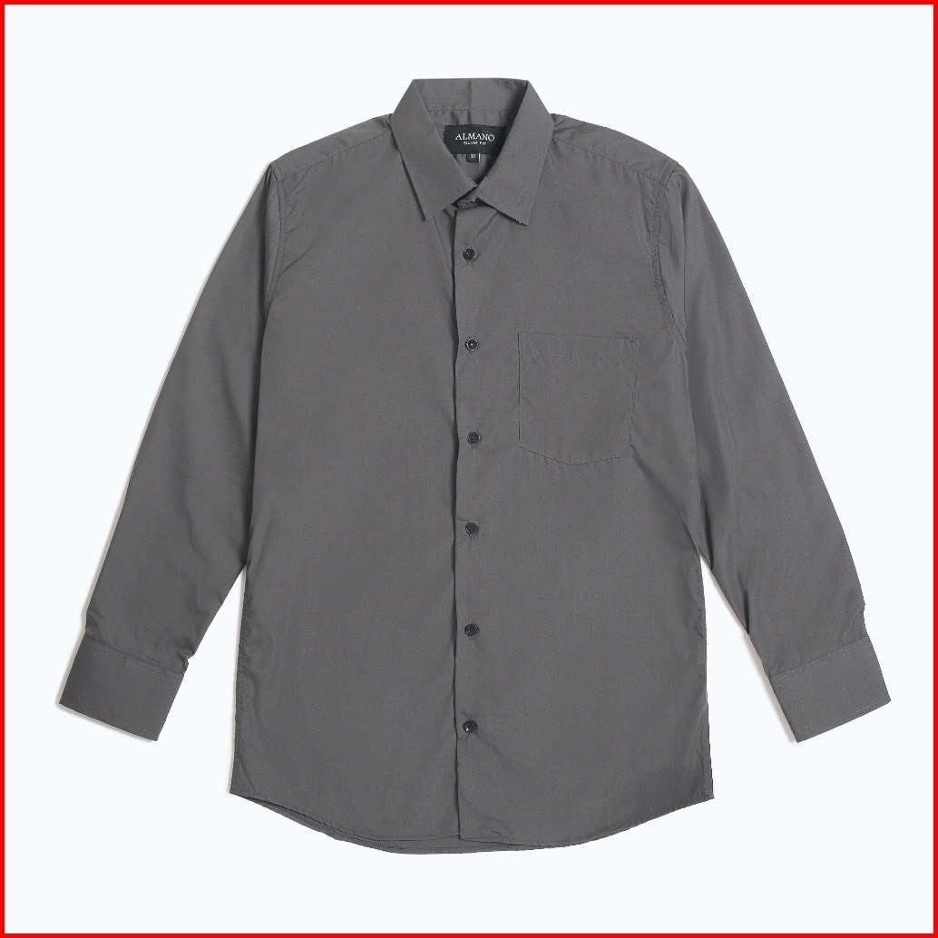 Almano Elegant Shirt Ls Dark Grey Kemeja Pria Slim Fit Panjang Polos Abu Tua