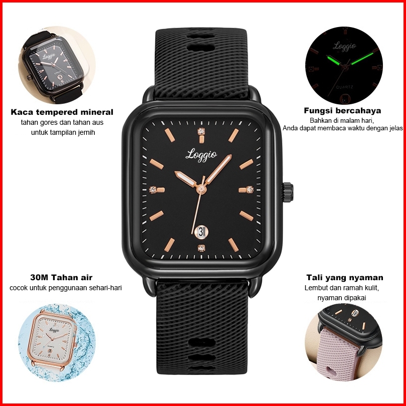 Loggio Jam Tangan Wanita Korea Anti Air Kuarsa Kasual Elegan Tali Silikon Jam Tangan Cewek Original