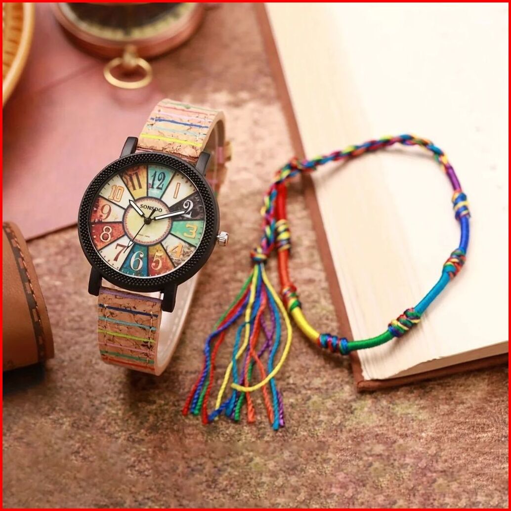 Garansi 1 Tahun Jam Tangan Wanita Putar Bergaris Motif Vintage Jam Tangan Kulit Gaya Korea Tahan Air Dan Tahan Karat Had