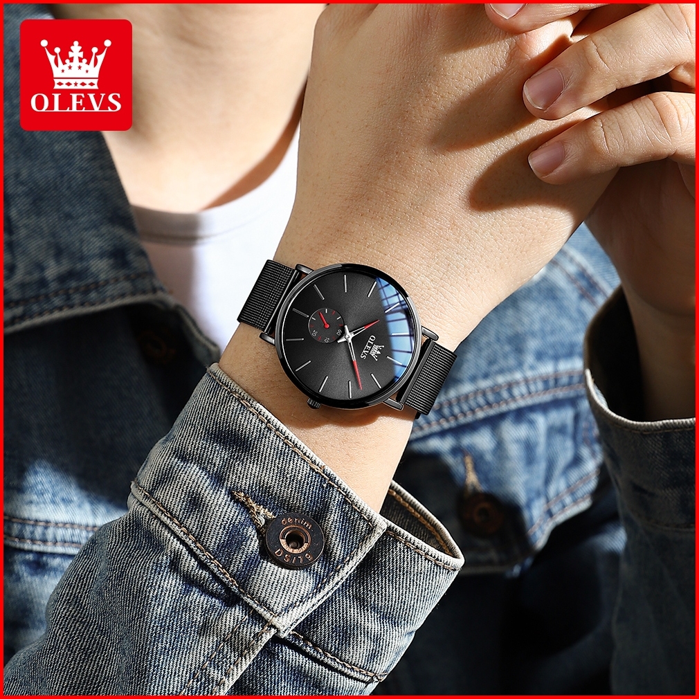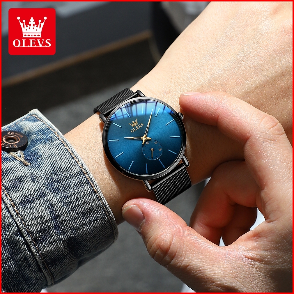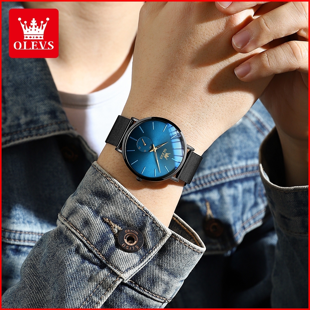 Olevs Jam Tangan Pria Tipis Original 100 Anti Air Mewah Analog Dial Ultra-tipis 7.5mm Quartz Watch Men Model 9954