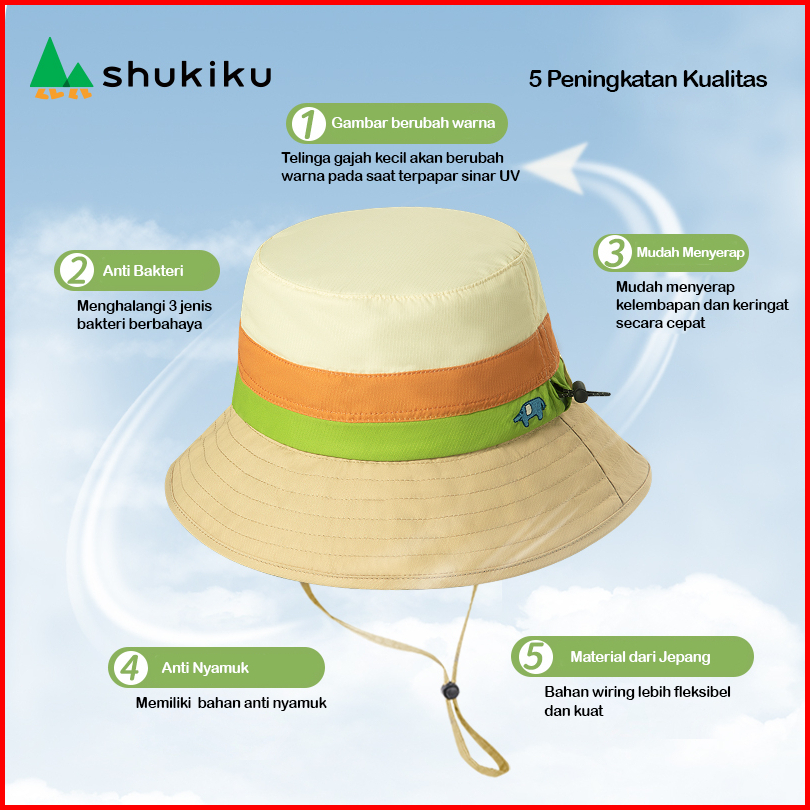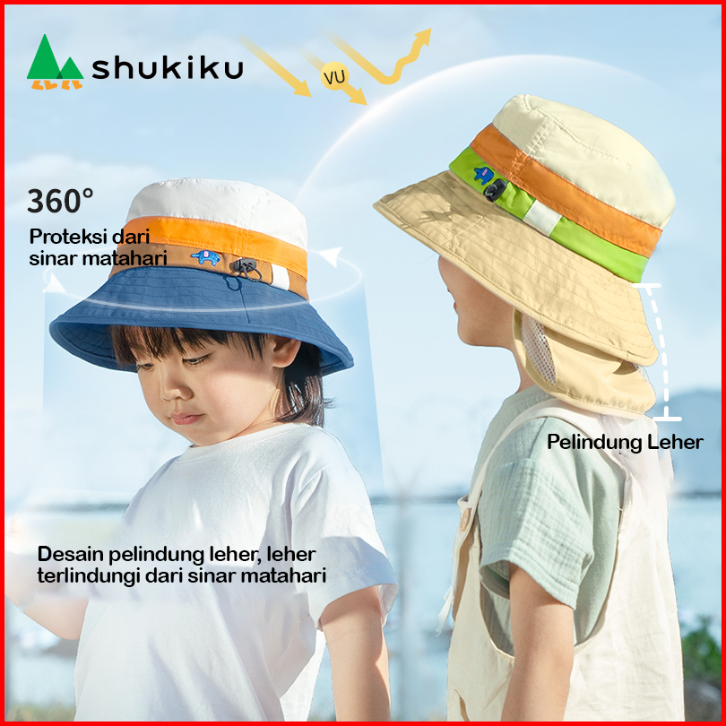 99khome - Shukiku Topi Bucket Hat Anak Pelindung Matahari Anti Uv Anti Kusut Topi Mancing Anak 6419