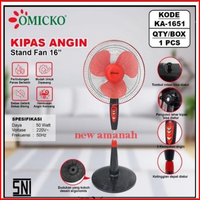 Kipas Murah Omicko Ka 1651 Stand Fan 16 Inch Kipas Angin Berdiri Angin Kencang