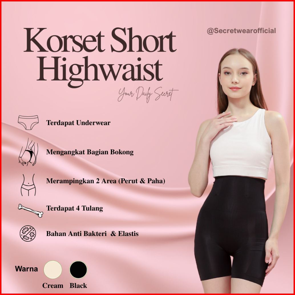 Secret Wear - Korset Celana Legging Highwaist Short Shaper Pants Korset Pelangsing Perut Buncit Korset Breathable