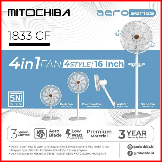 Mitochiba Kipas Angin 4 In 1 Aero Series16 Inch 1833cf 1833cfr 1733cf 1733cfr Mt1822sr Garansi Resmi