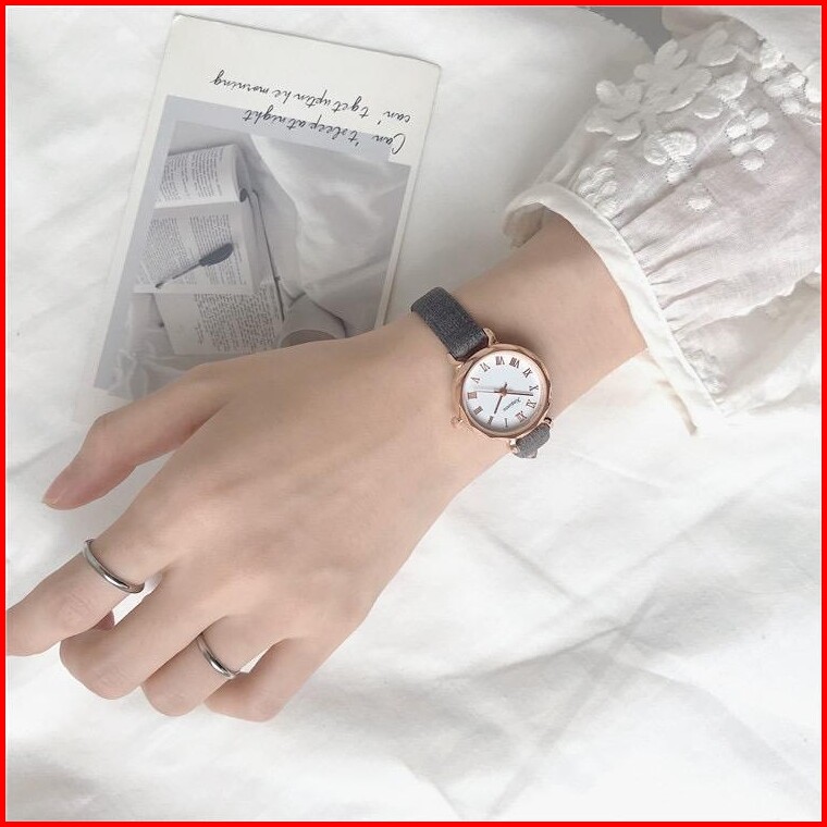 Jam Tangan Kuarsa Wanita Kasual Gaya Vintage Analog Dial Kecil Pu Tali Kulit Jam Tangan