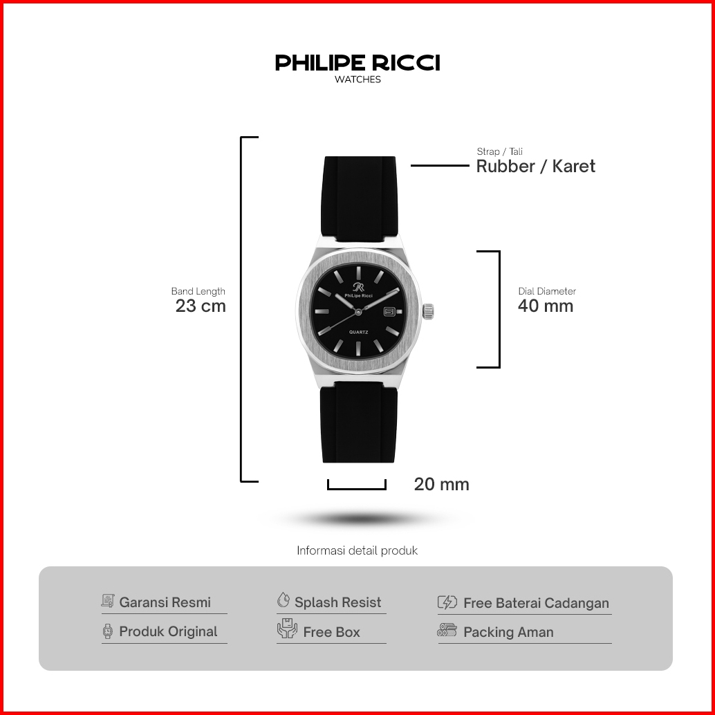 Philipe Ricci Jam Tangan Pria Karet Analog Simple Keren Terbaru Original 100 7273 Men Watches