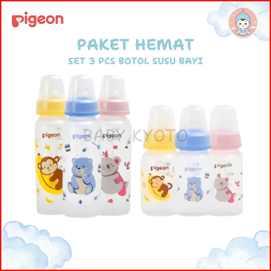 Bk 3 Pcs Botol Dot Susu Bayi Pigeon Slim Neck Peristaltic Ulir Nipple Newborn Baby Bottle Pp Bpa Fre