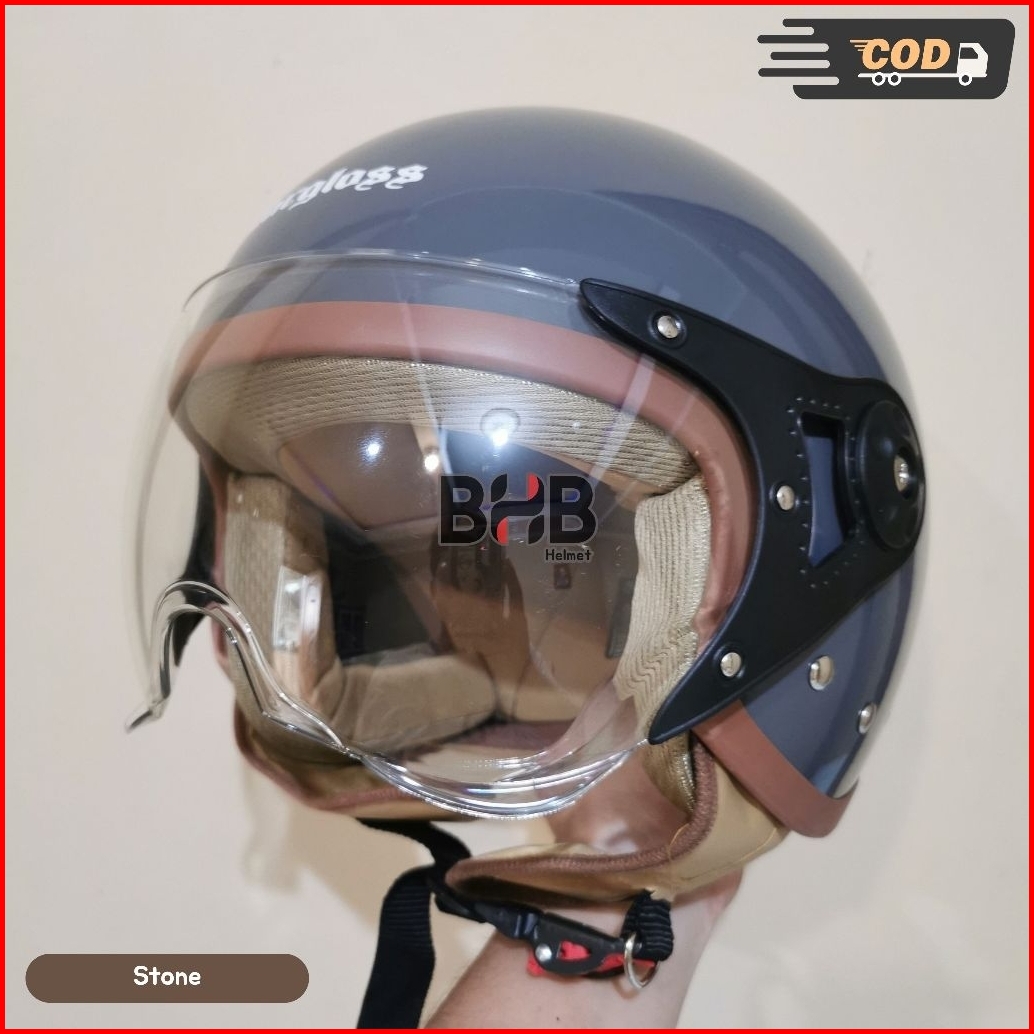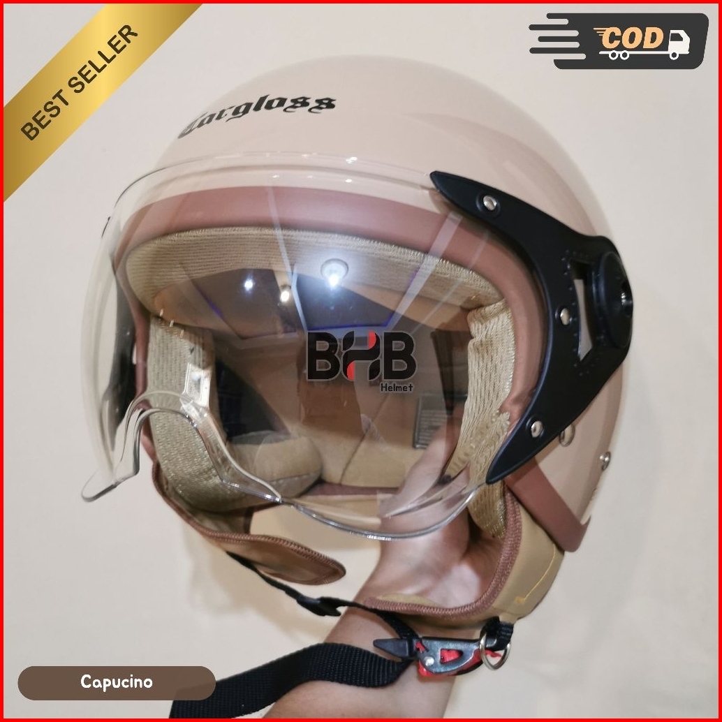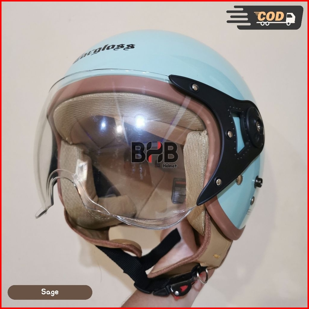 Helm Hijab Anti Pusing Kaca Pilot Helm Dewasa