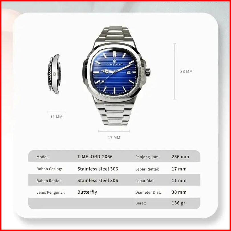 Jam Tangan Pria Tahan Air Kaca Safir Timelord 2066 Original Stainless Steel Anti Gores Garansi Resmi