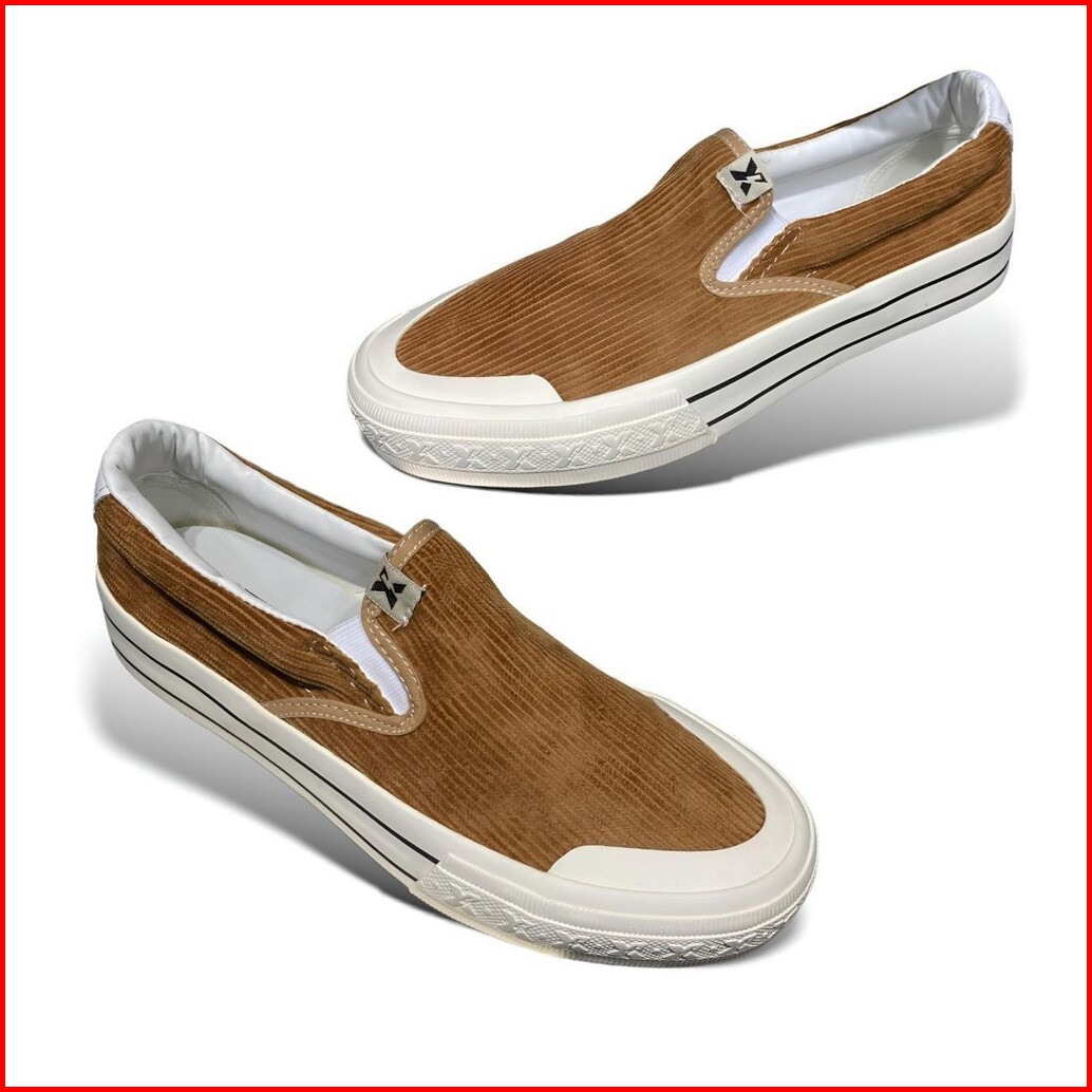 Xternalstepsure - Sepatu Slipon Corduroy Coklat Susu Casual Pria Wanita