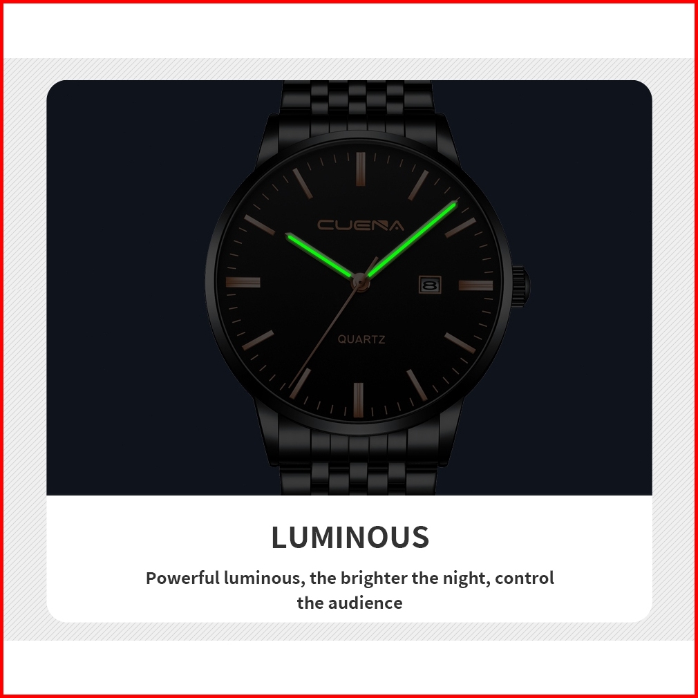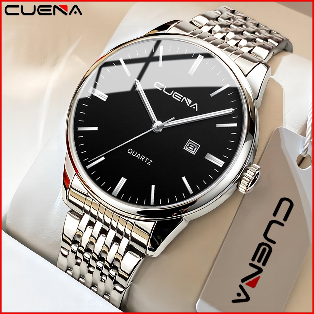 Cuena Kasual Olahraga Jam Tangan Pria Stainless Steel Band Jam Tangan Sederhana Dial Jam Kuarsa Dengan Bercahaya Pointer