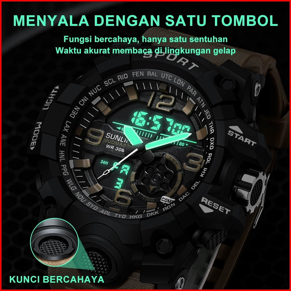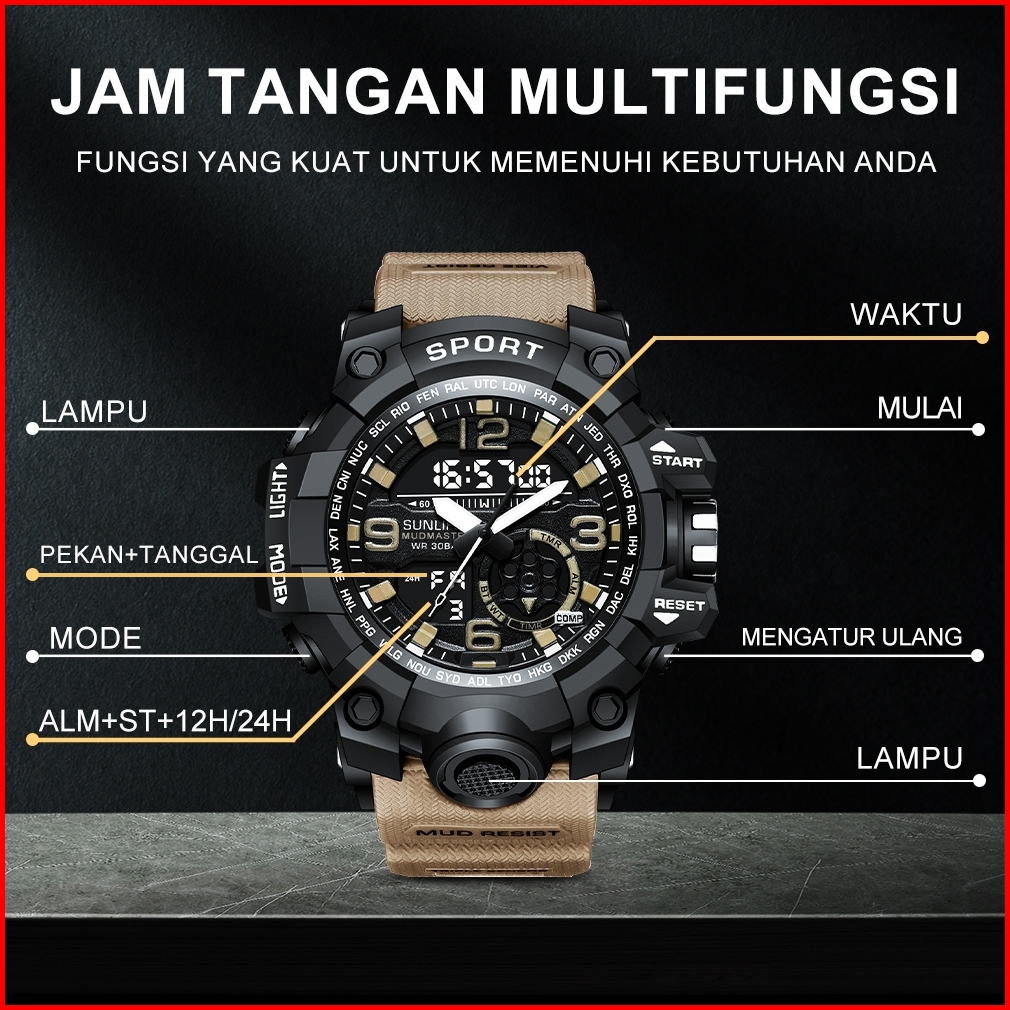 Sunlifex D002 Jam Tangan Pria Digital Anti Air Tali Silikon Multifungsi Watch Keren Olahraga Cowok