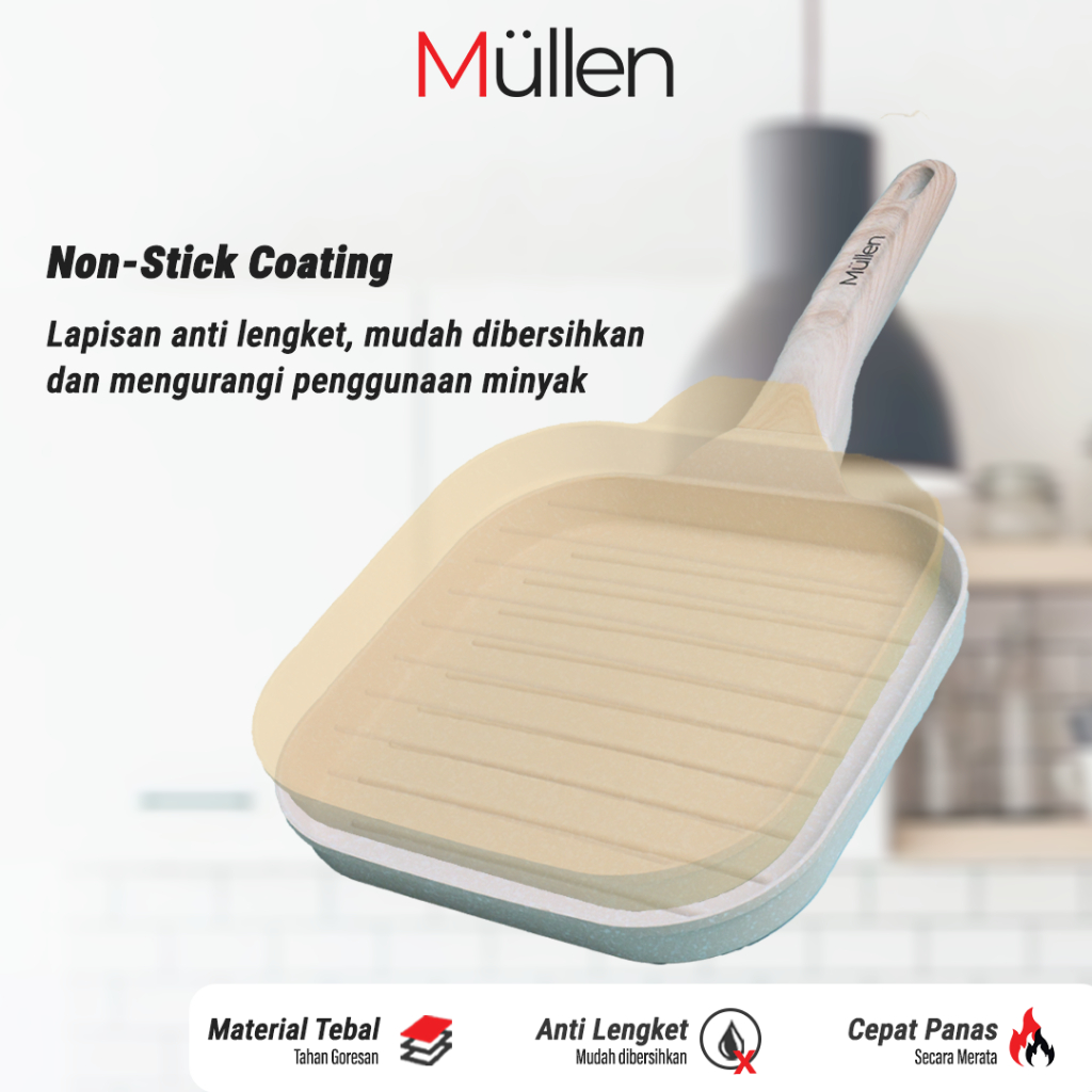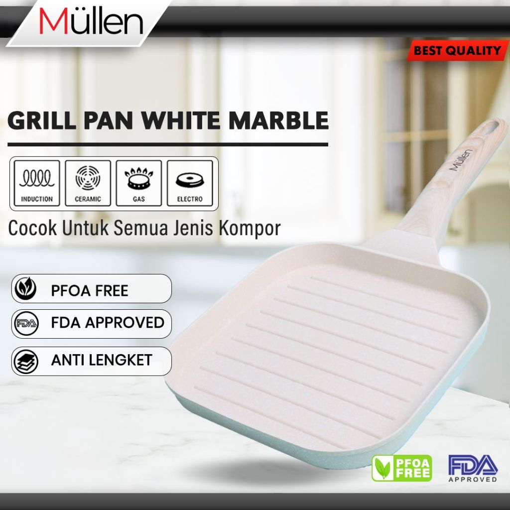 Mullen Grill Pan White Marble Wajan Panggangan Anti Lengket Square Grill Pan Double Bottom Wajan BBQ Panci Pemanggang
