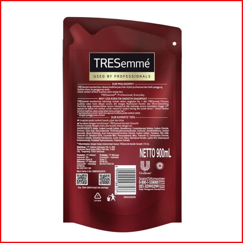 Tresemme Shampoo Perawatan Rambut Keratin Smooth Dengan Hydrolyzed Keratin Untuk Rambut Lembut Kualitas Salon 900 Ml