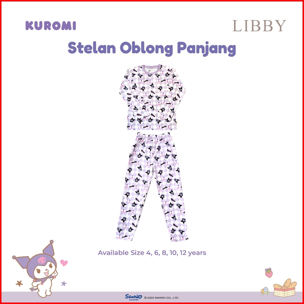 Libby Sanrio Setelan Piyama Oblong Anak Besar Perempuan Kuromi Cinnamoroll My Melody Size 4thn - 12 Thn 1 Stel Seri 2 Pi