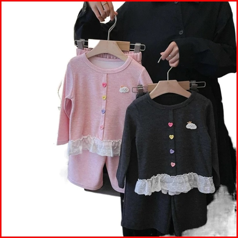 Princess Kesli 2-11 Tahun Setelan Anak Perempuan Modis Musim Semi Baru 2025 Atasan Bulu Beras Ketan Renda Celana Setelan