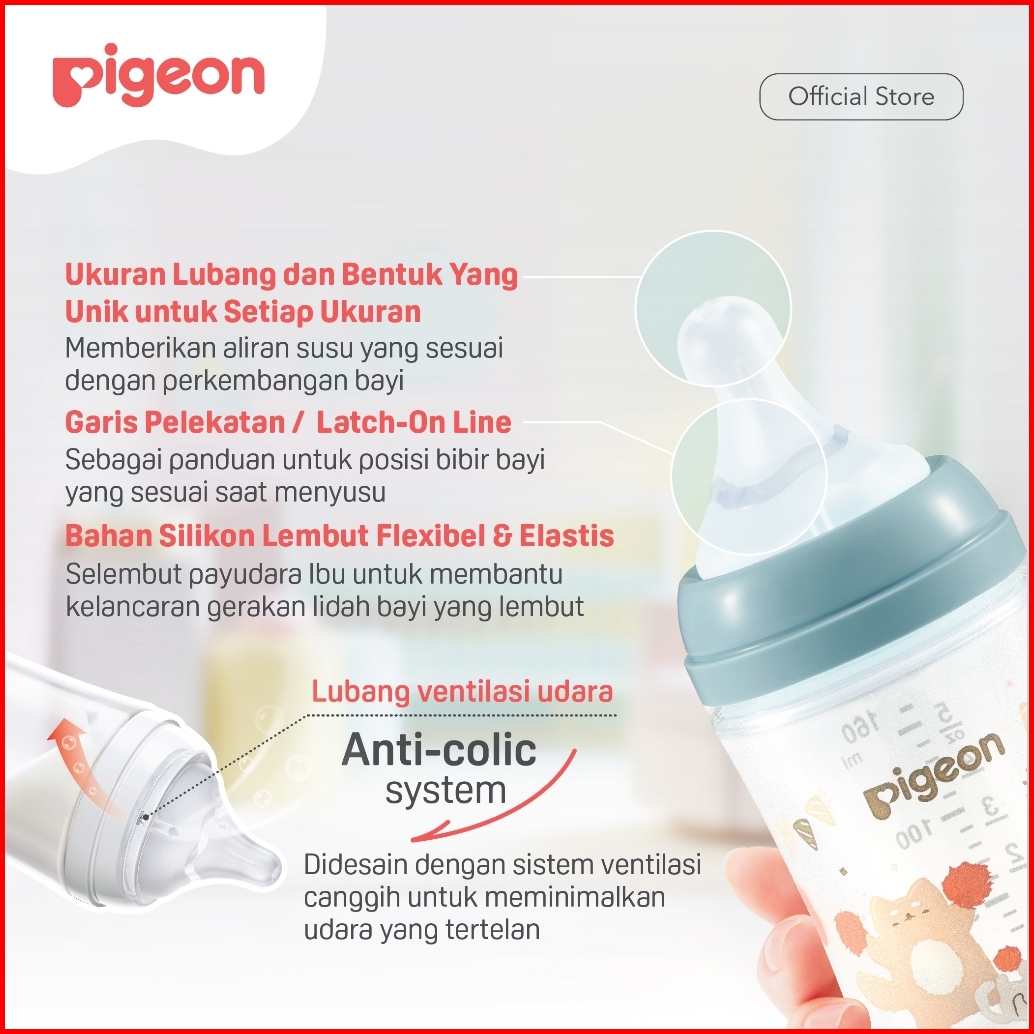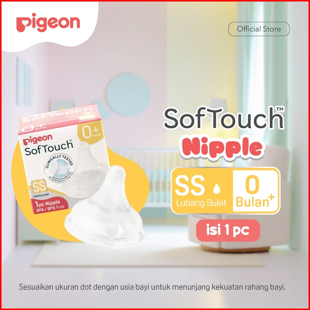 Pigeon Softouch Nipple Dot Wide Neck - 1pc Box Pilih Size Dot Seperti Payudara Ibu Elastis Lembut Anti Kolik Lubang Avs