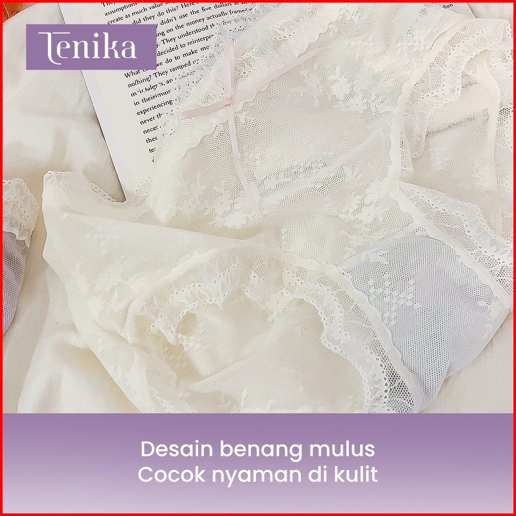 Tenika Celana Dalam Wanita Sexy Transparan - Cd Renda Brokat Motif Bunga Lembut Modis