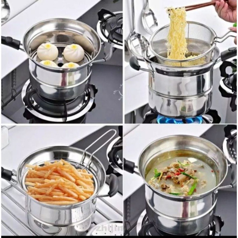 NOODLE POT PANCI MIE 3in1 Stainless Steel - Panci kukus serbaguna Penggorengan Kentang Multifungsi